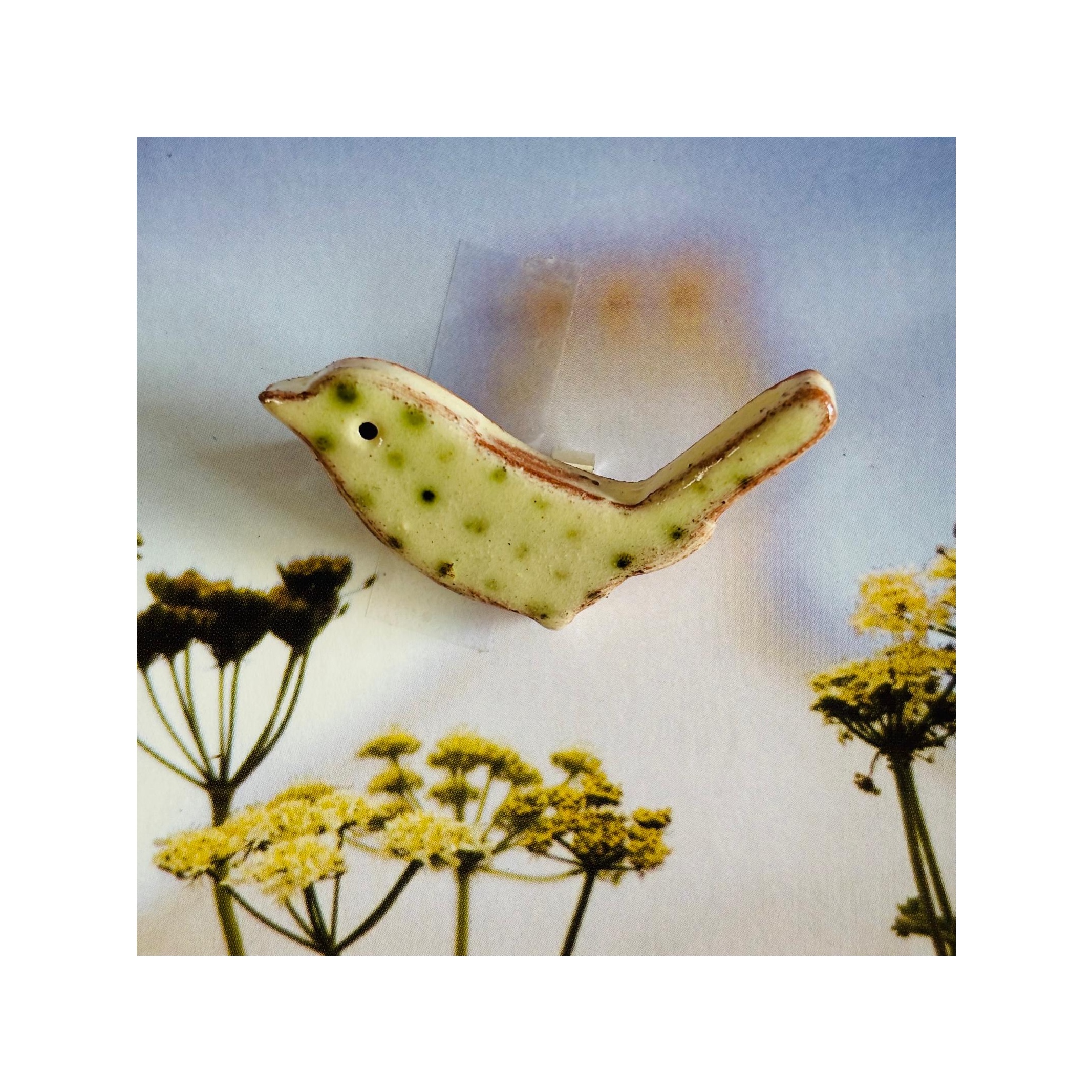 Bird Brooch 1 “Green spots on Cream” quantity
