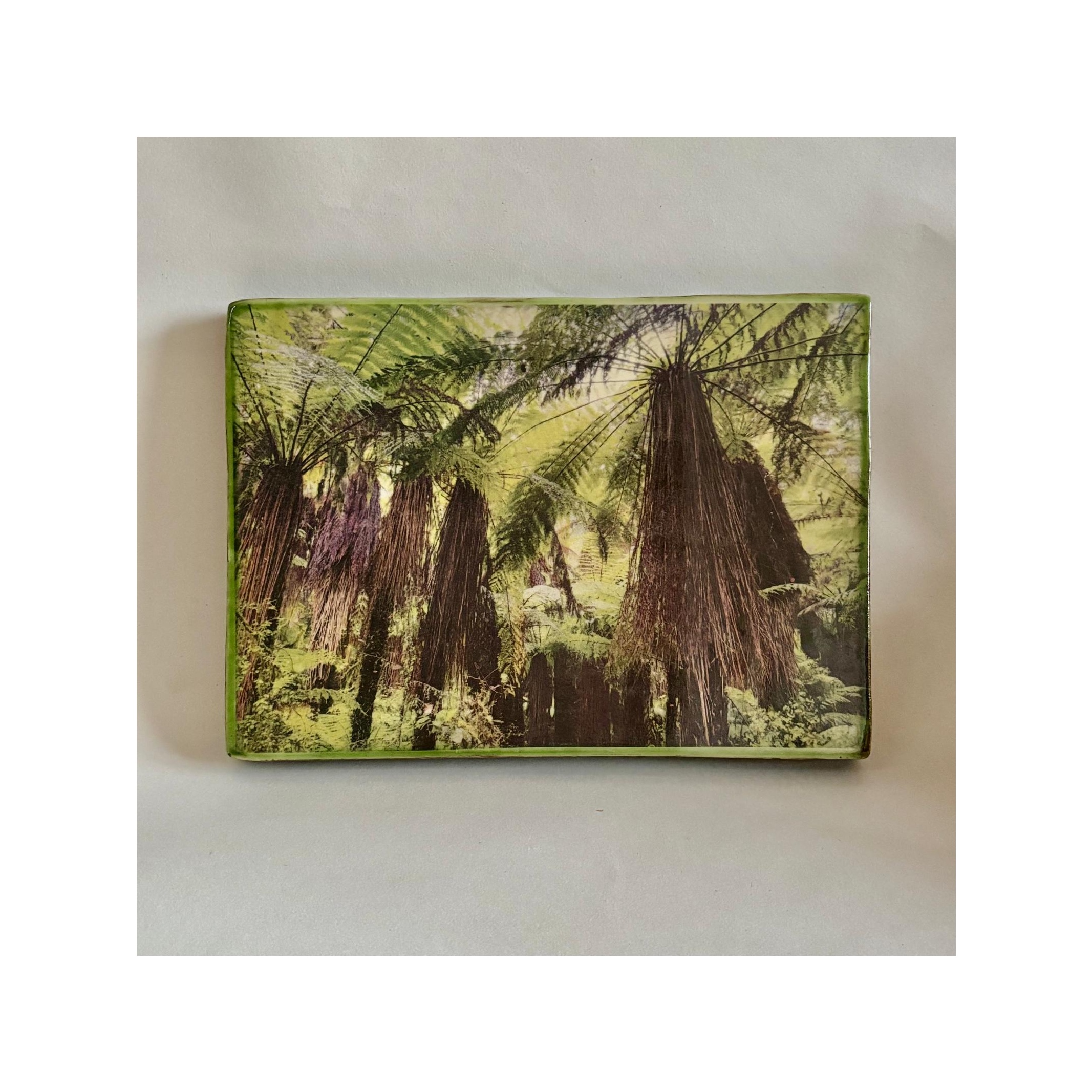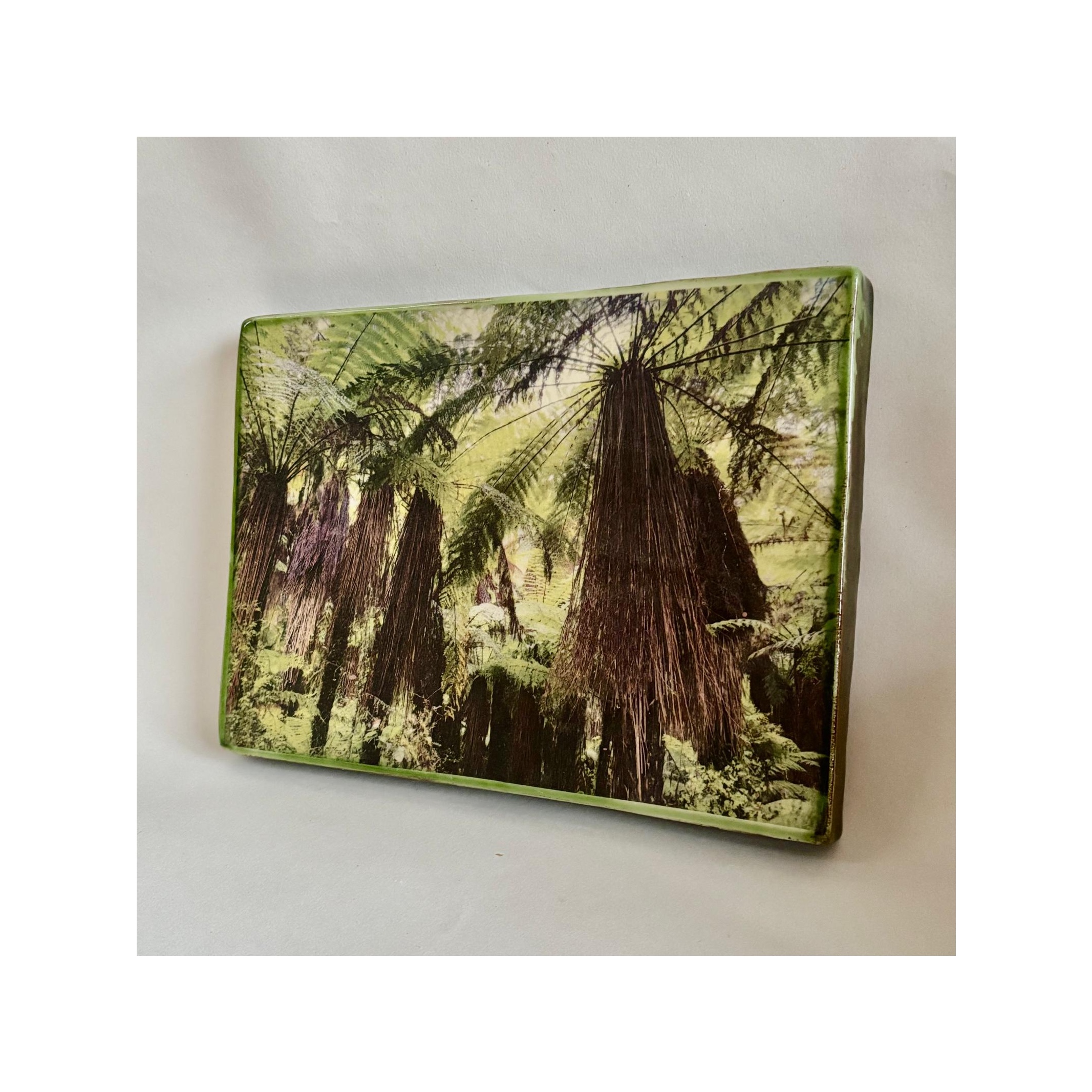 Ceramic Transfer Wall-piece “Shamanic Ferns in NZ Rainforest”
