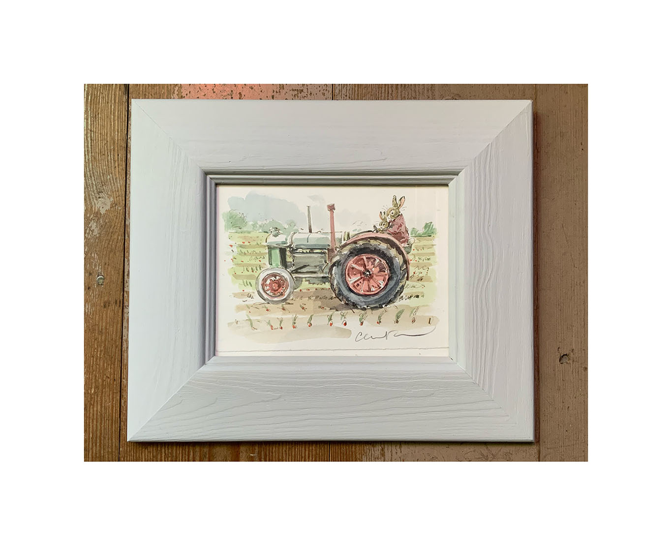 Framed Original Watercolour “Bunnies on Tractor”