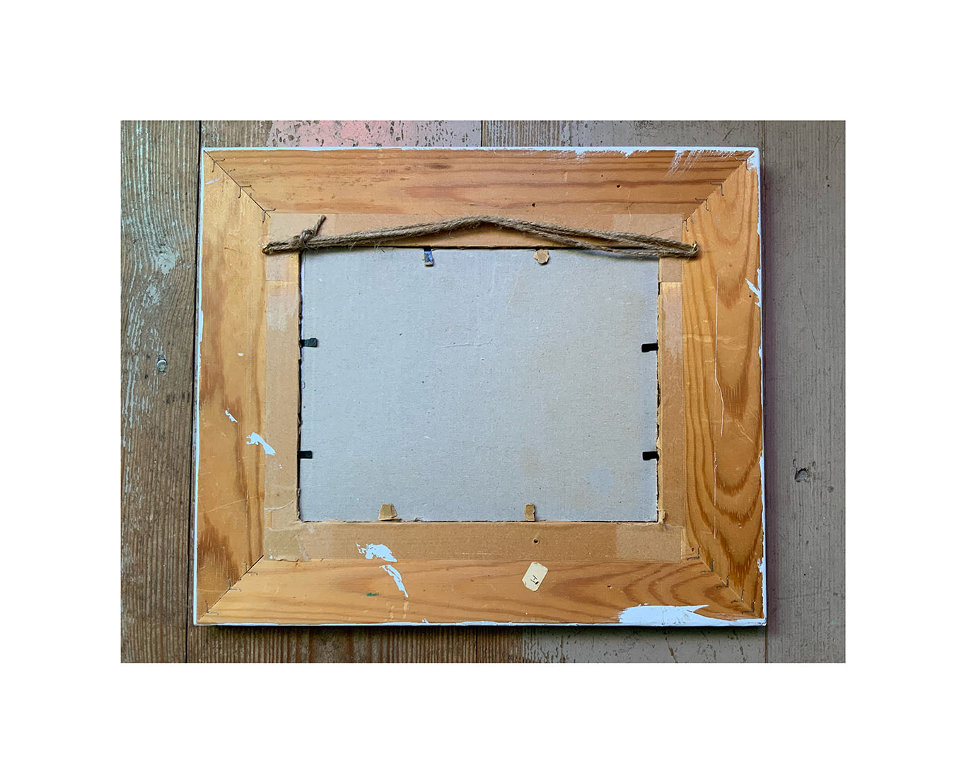 Framed in a painted wood frame as seen.