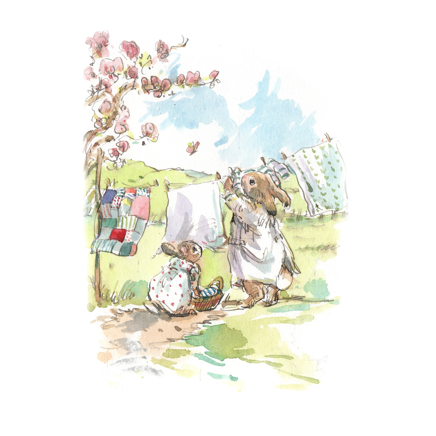 PRE-ORDER NEW PRINT “Spring Blossom and bunnies at washing line”