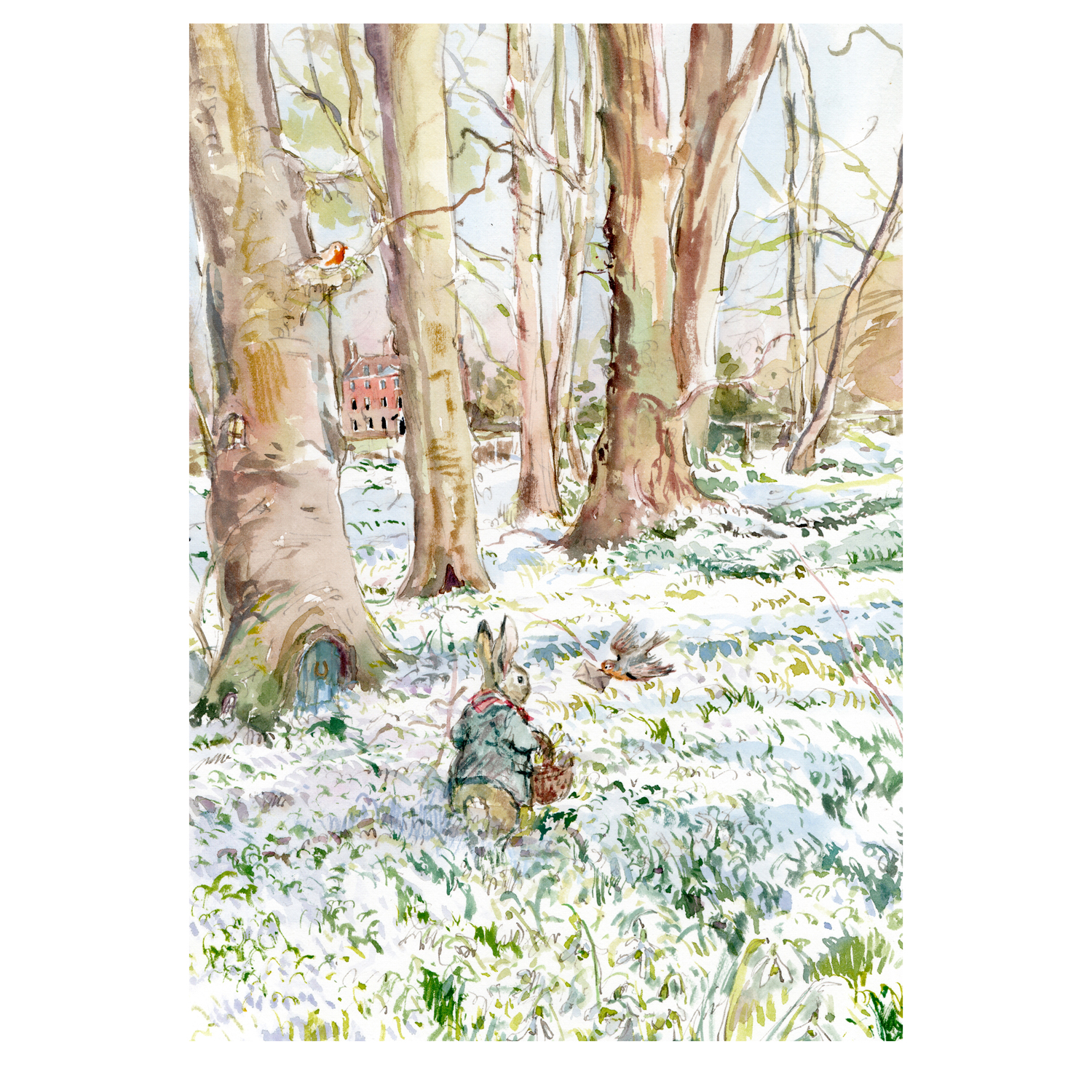 PRE-ORDER PRINT “Bunny in snowy snowdrop field”