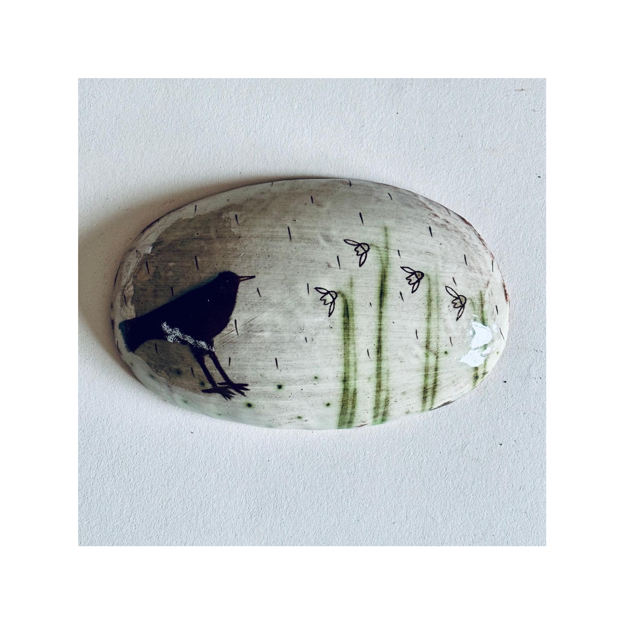 Wall Piece “Blackbird + Snowdrops”